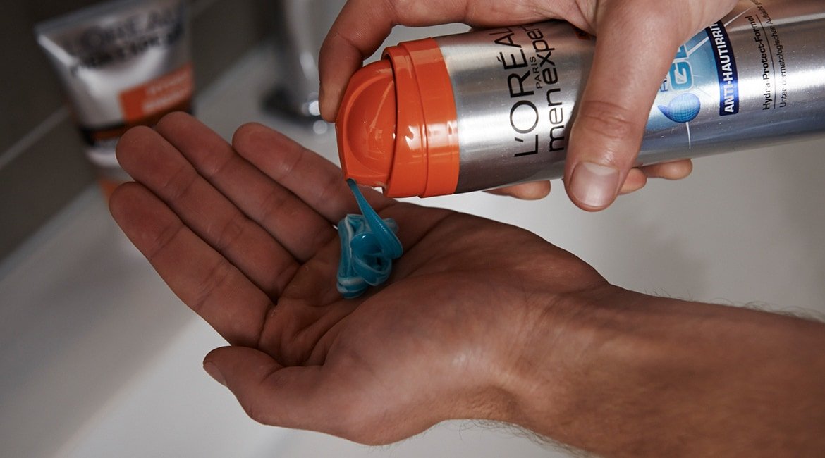 - Hydra Sensitive Rasierschaum oder Rasiergel von L’Oréal Men Expert für empfindliche und trockene Haut