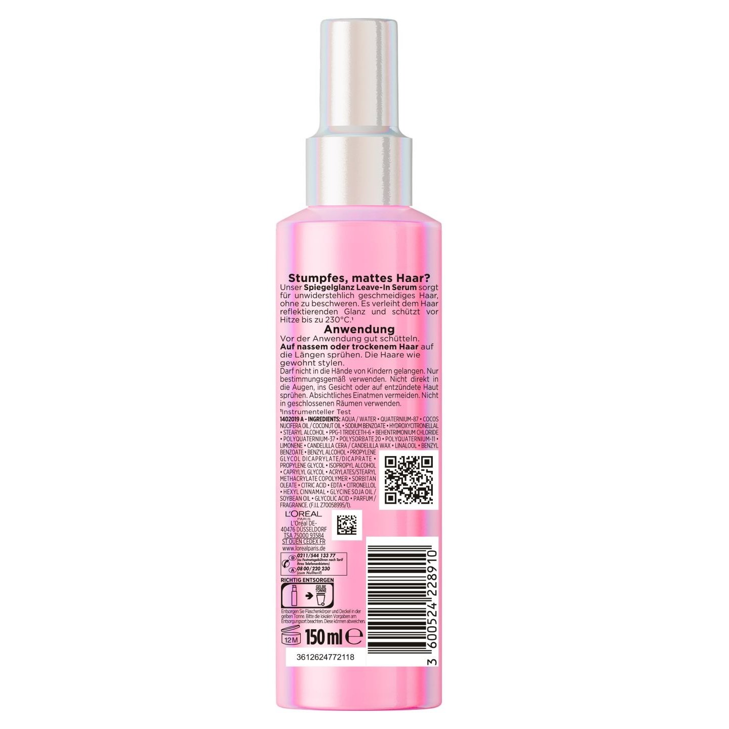 - Le sérum sans rinçage Elseve Glycolic Gloss offre à tes cheveux jusqu'à 230°C de protection thermique et agit contre les frisottis.